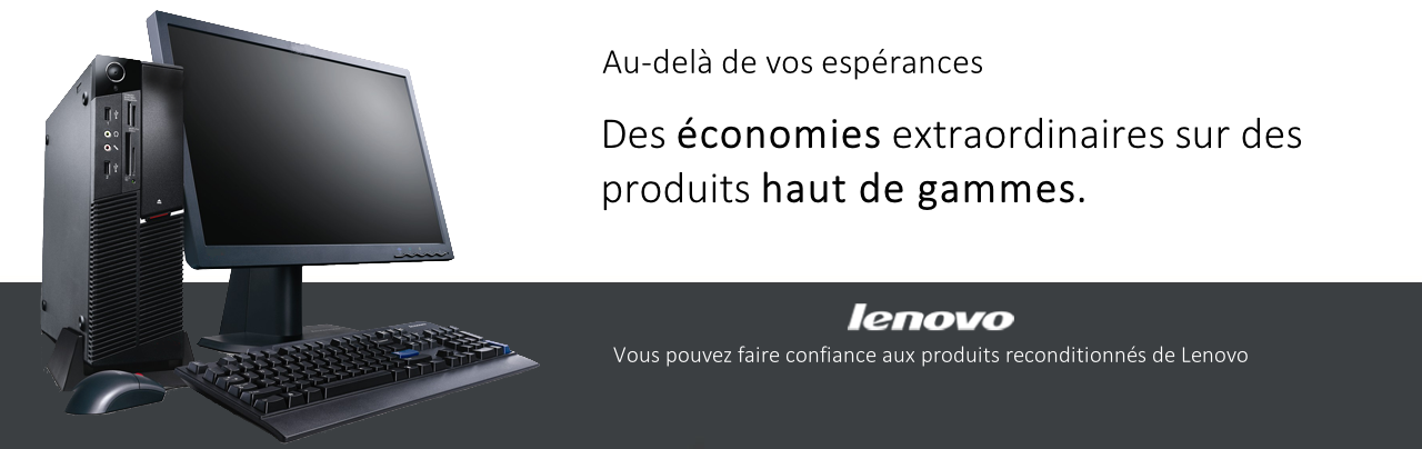 Nous offrons la technologie qui offre à votre main-d'œuvre La polyvalence et la mobilité qu'elle exige, ainsi que la fiabilité, la sécurité et le soutien continu pour faciliter le travail de l’informatique. Lorsque vous choisissez les produits Lenovo remis à neuf, vous investissez dans des produits de premier rang qui fourniront une valeur exceptionnelle tout au long de leur durée de vie. Pour les entreprises de toutes tailles ou travailleurs autonomes, On offre la meilleure technologie de bureau pour augmenter la productivité et l'efficacité d'une entreprise tout en étant conscient des résultats.